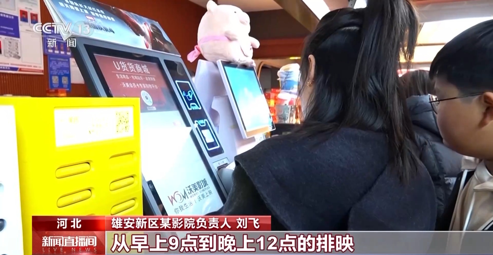 雄安新区某影院负责人 刘飞:雄安新区优惠政策推出以后,对我们电影院整体观影人次增加有很大的帮助。我们现在每天从早上9点到晚上12点的排映,大概40场电影,能达到80%的上座率。