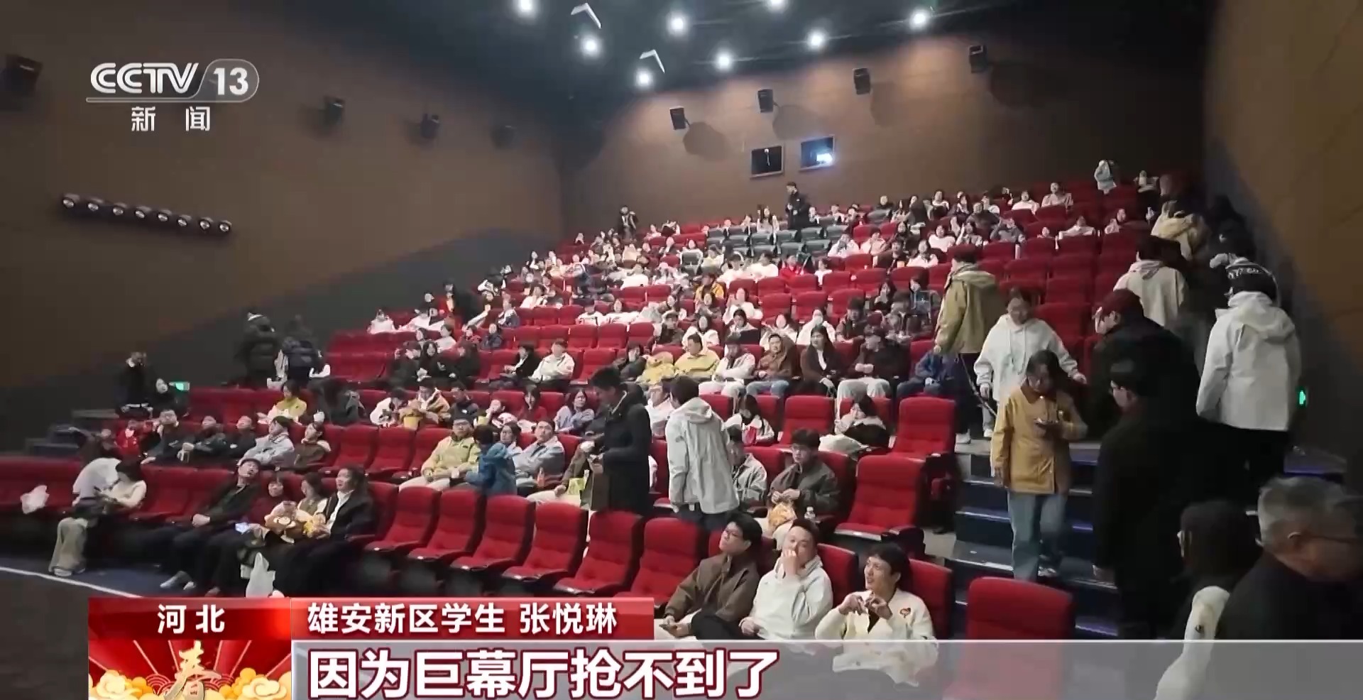 雄安新区学生 张悦琳:要不是因为这个电影票不好抢,我们就所有人都来看了。巨幕厅抢不到了,第一排都有人,影厅都坐满了。