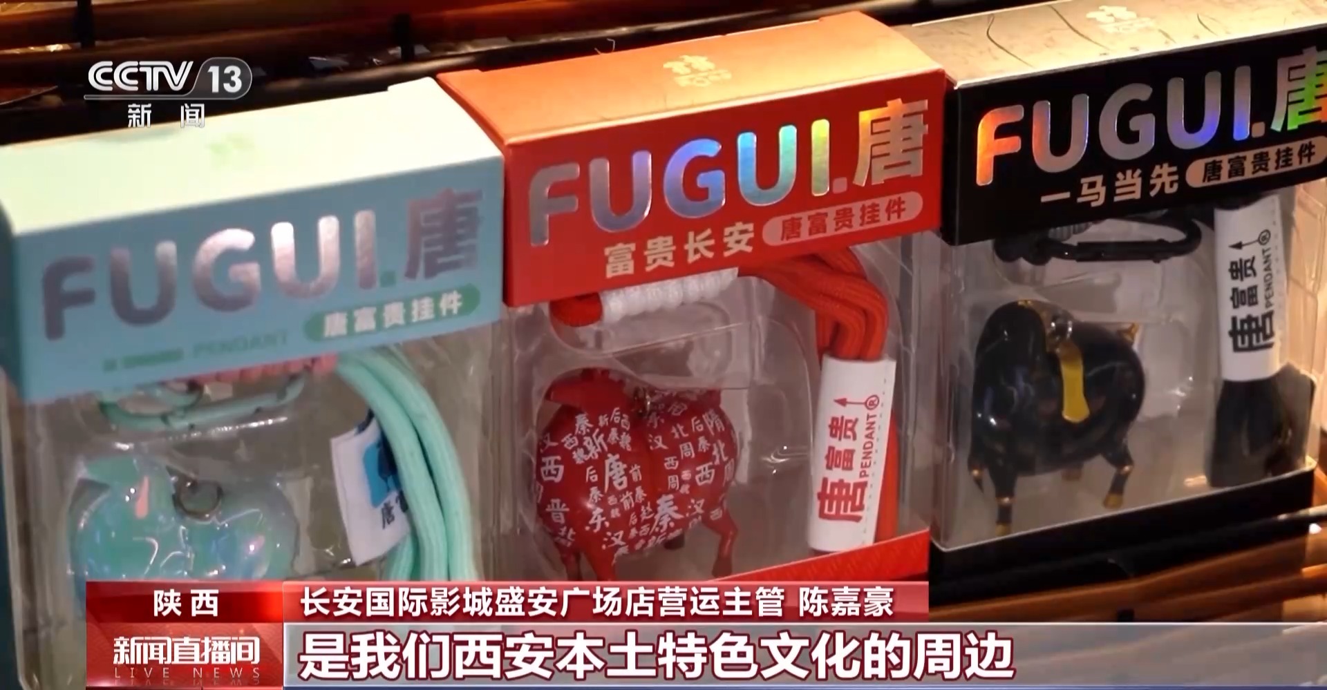 长安国际影城盛安广场店营运主管 陈嘉豪:这次把电影票和西影特色文创周边做了一个深度绑定。同时还引入了祈福冰箱贴、昭陵六骏等挂件,是我们西安本土特色文化的周边。套票绑定到一块卖,比单独购买电影票和文创周边的价格优惠了10元钱左右,等于是一次性让观众收获“观影+文创收藏”的双重快乐,在观影的同时可以把一份长安年味带回家。
