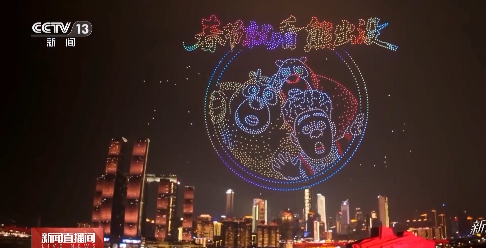 在“新韵重庆”无人机灯光秀表演上,“春节就看熊出没”和“全家一起更欢乐”的机组造型出现在夜空上,引得现场观众举起手机拍摄,也为这个春节增添了很多童趣。